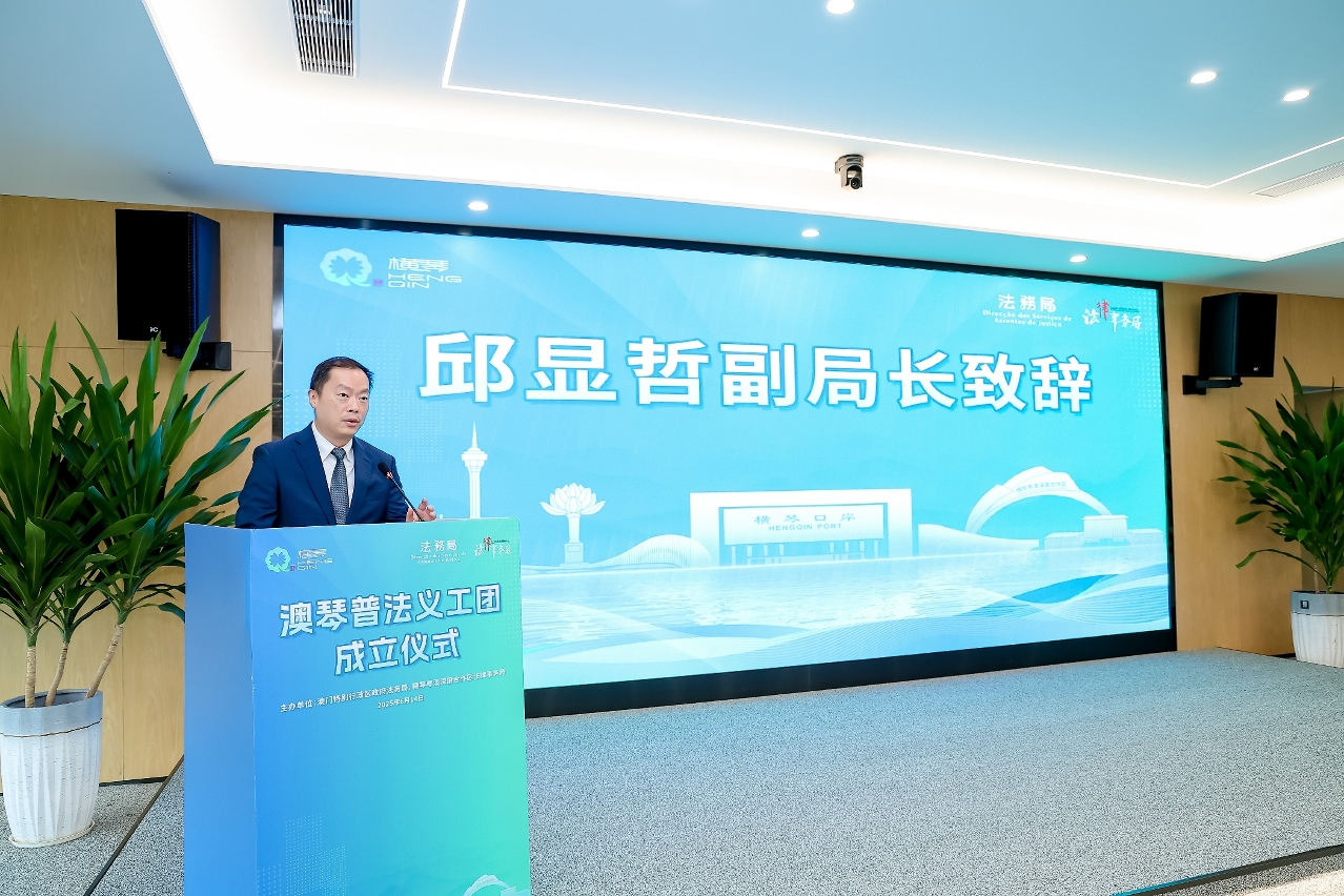 由澳門特別行政區政府法務局與橫琴粵澳深度合作區法律事務局共同籌組的“澳琴普法義工團”於今(14日)舉行成立儀式,首批義工團團員來自澳琴兩地的13個社團,共68人。儀式上,經團員們投票選出團長高嘉仁,副團長林美芳、莫美欣、黃淑筠和盧綺嵐。