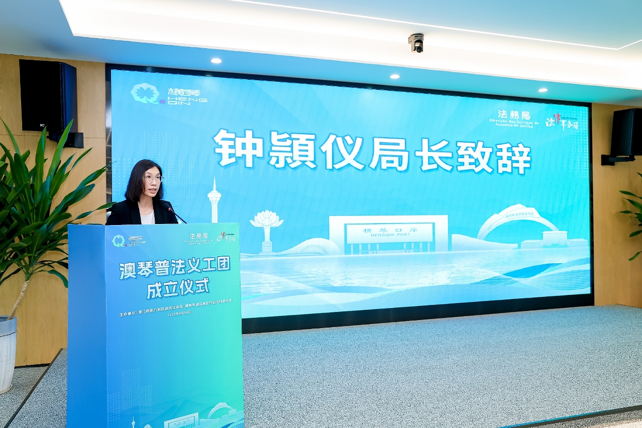 法律事務局局長鍾頴儀在致辭時表示,中央決定開發橫琴,目的就是促進澳門經濟適度多元發展、便利澳門居民生活就業。兩地法律部門推動成立“澳琴普法義工團”,就是為了發揮“澳門+橫琴”人才疊加效應,更有效推廣有助於澳資澳企澳人到合作區發展、生活的政策和法律,是推動澳琴居民「心聯通」的具體舉措。她期望普法義工們說好“澳門+橫琴”故事,共同為建設澳琴居民的美好新家園發揮力量。