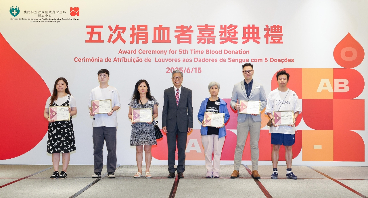 典禮舉行期間,羅奕龍局長、郭昌宇副局長、鄭成業副局長、陳永華副局長及捐血中心許萍主任,分別向出席的捐血者頒發“五次捐血者證書”,表彰其對澳門醫療事業的重要貢獻。衛生局特別提醒,因故未能出席典禮的受邀捐血者,可前往捐血中心領取證書。