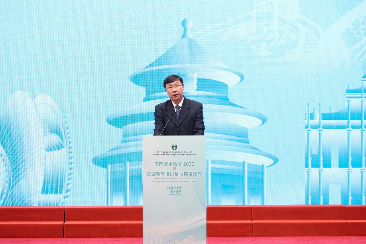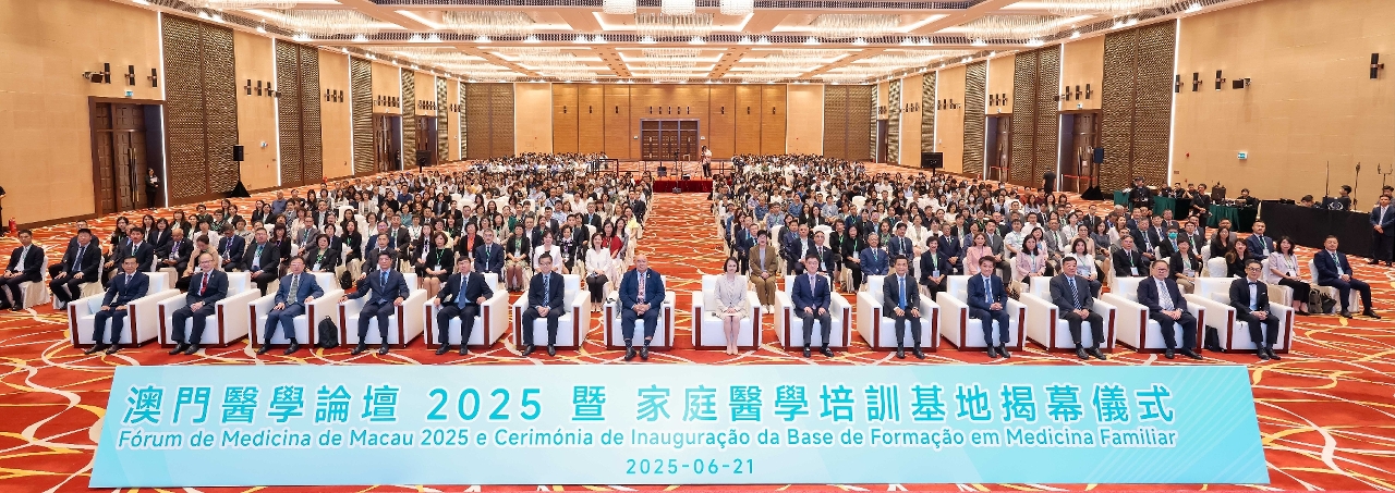 為落實《健康澳門藍圖》所訂定的總體目標和指標,積極推動“健康社區”計劃,貫徹資源下沉至社區,擴大社區醫療效能,提升本澳醫療人員的專業素養及臨床實踐技能,推動本澳醫療技術進步,助力實現建設“幸福澳門”的施政願景,澳門特別行政區政府衛生局於今(21)日舉辦“澳門醫學論壇2025暨家庭醫學培訓基地揭幕儀式"。澳門特別行政區政府社會文化司司長柯嵐、世界衛生組織西太平洋區域主任賽亞·皮烏卡拉(Dr Saia Ma'u Piukala)、中國工程院院士、上海交通大學醫學院附屬瑞金醫院院長寧光、中央人民政府駐澳門特別行政區聯絡辦公室宣傳文化部部長萬速成、澳門特別行政區政府衛生局局長羅奕龍、國家衛生健康委員會基層衛生健康司副司長黃磊等,來自內地、香港特別行政區和本澳的醫療機構、學者及社團代表近1,000人出席了是次論壇及揭幕儀式。