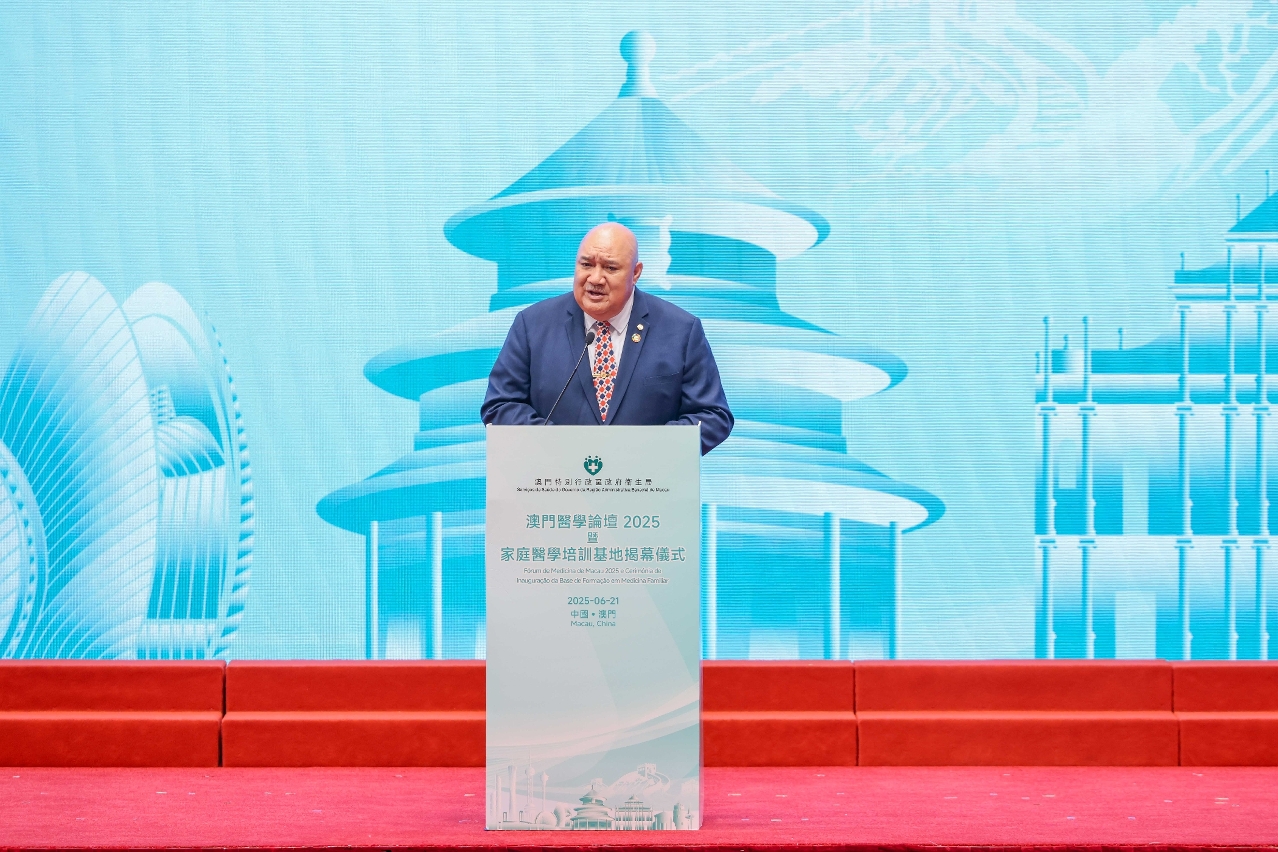 賽亞·皮烏卡拉主任致辭時指出,家庭醫學作為基層醫療的重要組成部分,能有效培養應對人口健康需求與健康緊急情況的醫療人才,是實現全民健康覆蓋的關鍵策略。而2023年,西太平洋區域委員會採納了《西太平洋區域塑造面向未來的衛生人力框架》,當中明確指出需朝着以基層醫療為導向的衛生系統轉型,家庭醫學因其遵循服務全面性、連續性與協調性三大原則,證實了能顯著改善患者健康結果與提升整體人口健康,有助減少住院率與死亡率。他高度肯定本澳設立“家庭醫學培訓基地”,認為此舉符合《健康澳門藍圖》的目標,展現澳門特別行政區政府在推動全民健康覆蓋與實現可持續發展目標方面的堅強領導力與遠見,世界衛生組織將持續與本澳合作,共同強化衛生系統,實現全民健康覆蓋。