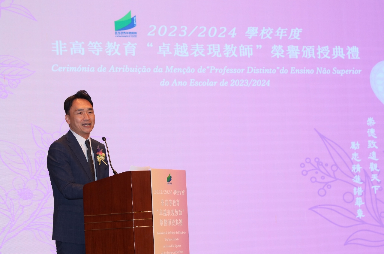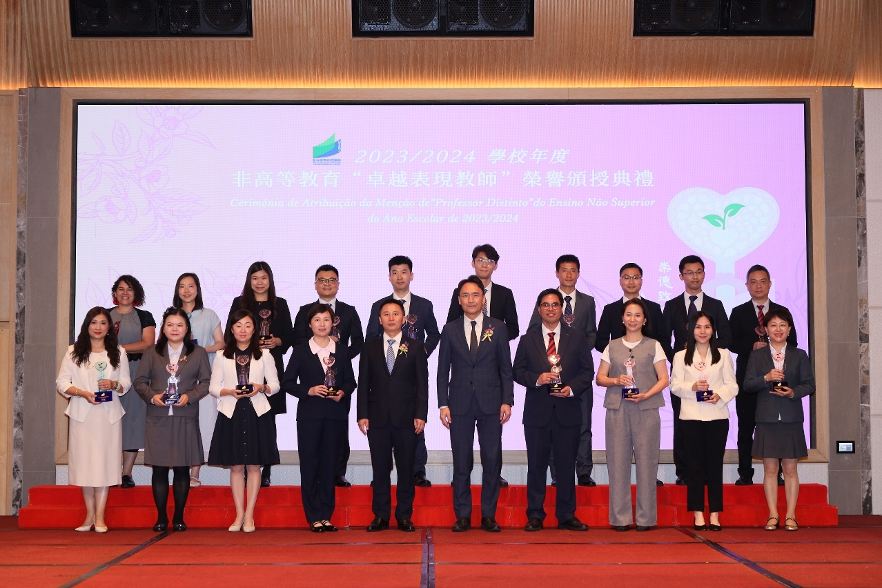 為激勵澳門非高等教育教師樹立良師典範,弘揚“尊師重道”、“立德樹人”的優良風尚,教育及青年發展局於6月26日假澳門漁人碼頭會議展覽中心舉行2023/2024學校年度非高等教育“卓越表現教師”榮譽頒授典禮,以表彰該學校年度在教育教學及專業操守方面表現突出的教師。共有18名本澳非高等教育私立學校和公立學校的教師獲頒授殊榮。