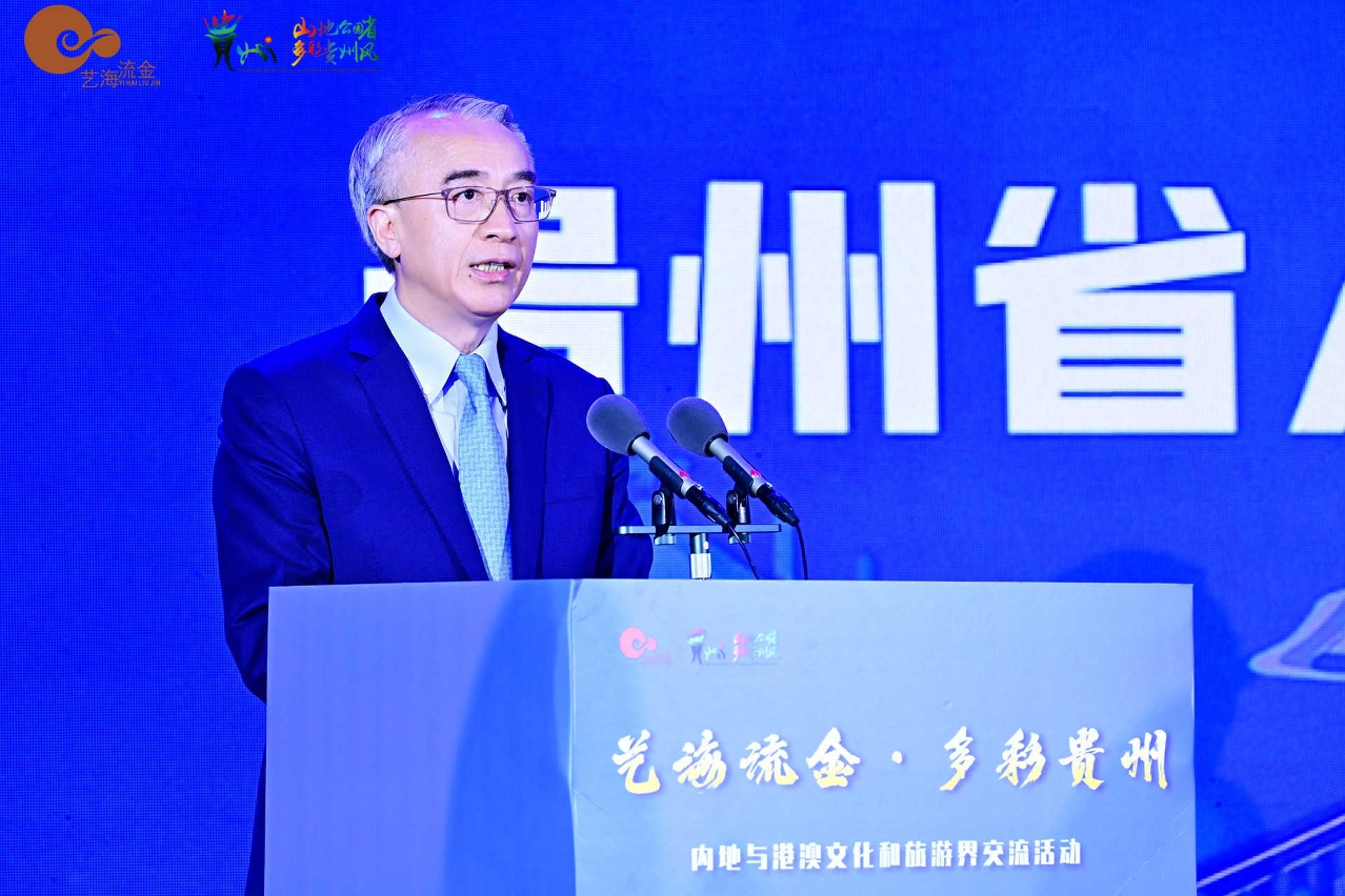 孔倫致辭表示,“藝海流金”活動自2005年創辦以來,已成為內地與港澳文化和旅遊界凝聚友情、交流思想、深化合作的重要平台。過去二十年,活動走進了山東、甘肅、浙江、海南、江西等多個省份,本屆“藝海流金”來到了“山地公園省”,體驗多彩貴州的精彩與美好。香港、澳門中西文化薈萃,具有“背靠祖國、聯通世界”的獨特優勢,期待大家共享發展機遇,持續深化合作,攜手再創輝煌。