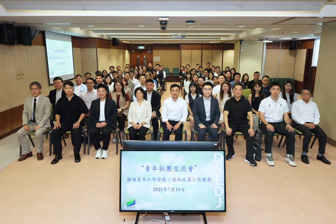 為加強政府與青年社團的溝通,促進青年政策與社團工作方向的有效對接,教育及青年發展局於7月15日舉辦“推進青年工作發展‧連結政策工作規劃”青年社團交流會,透過廣泛聽取青年社團建議,動態掌握青年群體的核心需求與發展趨勢,為優化青年政策提供決策依據。教青局副局長黃嘉祺、青年廳廳長張敏輝、青年發展處處長趙寶威,以及80名青年社團代表出席。