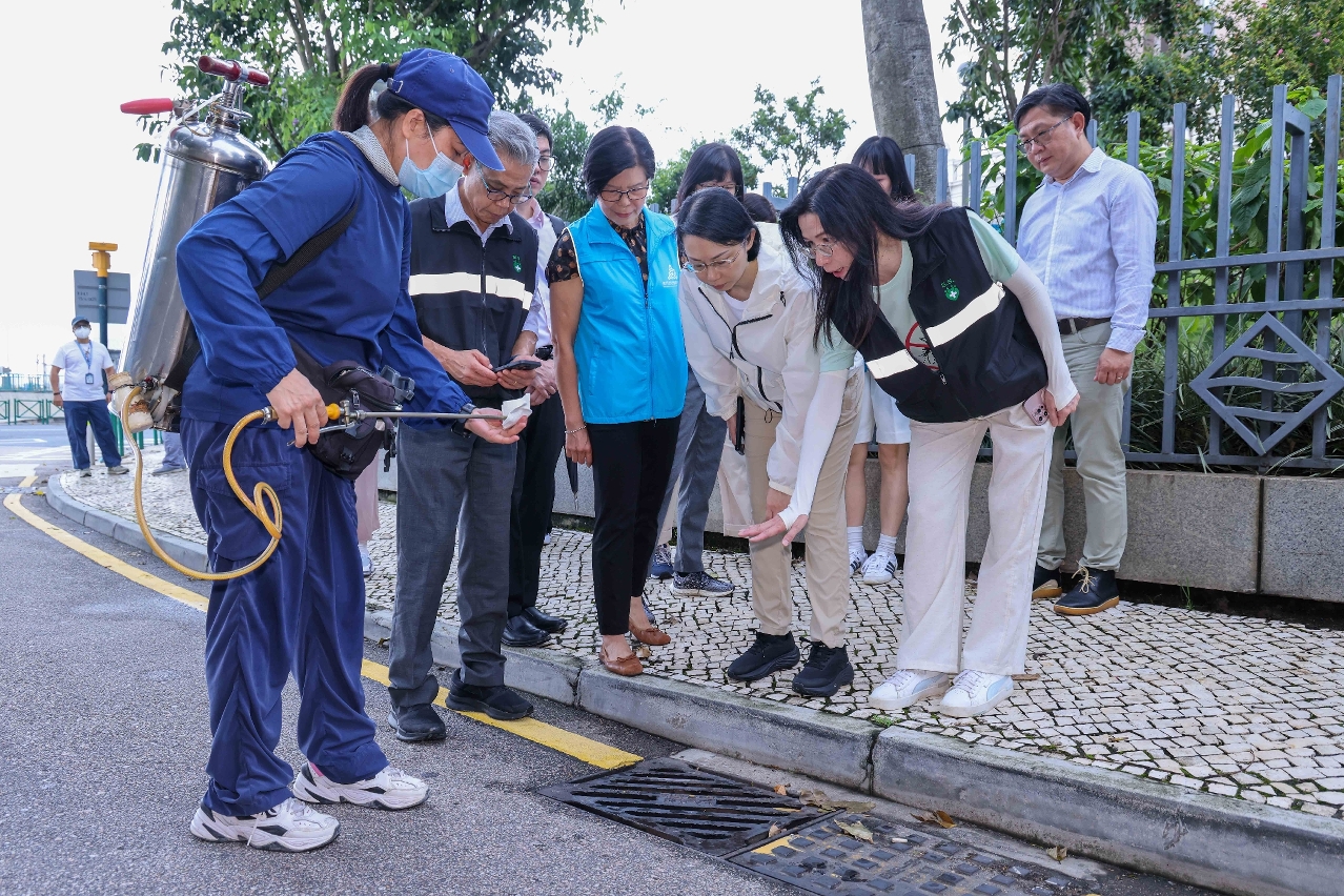 鑑於鄰近地區蚊媒傳播疾病明顯增多,本澳人員往來頻繁,傳入本澳風險增高,加上本澳今年已錄得5例輸入性基孔肯雅熱病例和1例本地登革熱病例,衛生局及市政署已對相關風險區域持續加強孳生源巡查及化學滅蚊工作。今(29)日社會文化司司長柯嵐、衛生局代局長郭昌宇、市政署市政管理委員會委員杜淑儀、衛生局疾病預防及控制中心主任梁亦好、市政署環境衛生及執照廳廳長馮惠星及公共建設局代表等實地檢查了涉及地盤、公園及衛生黑點等的滅蚊工作。