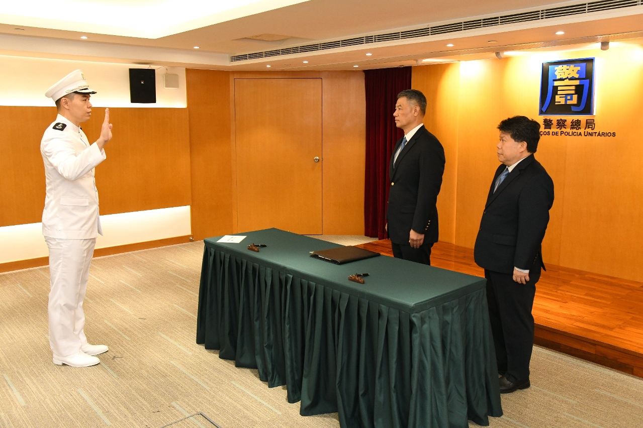 根據保安司司長批示,自2025年8月1日起,委任治安警察局副警務總長吳俊銘為警察總局警務聯絡及公共關係處處長。就職儀式於今(1日)在警察總局舉行,儀式由警察總局局長梁文昌主持,並在局長助理梁文照、局長助理魏瑞斌、局長助理林俊生、金融情報辦公室主任朱婉儀、局長辦公室協調員趙汝民以及各部門主管及同事的見證下,吳俊銘處長宣誓就任。