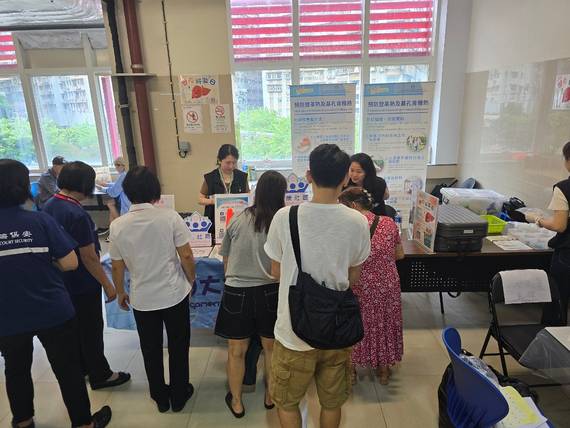 為響應7月28日“世界肝炎日”和積極推動“健康社區”計劃,衛生局聯同巿政署於7月28日至30日一連三日分別在沙梨頭、祐漢及下環街巿熟食中心舉辦“2025年世界肝炎日”活動。活動設有攤位遊戲、播放宣傳影片及現場提供乙型肝炎病毒快速測試,透過遊戲互動形式向居民傳遞乙型肝炎健康知識。另外,還設有預防基孔肯雅熱及登革熱(下稱:兩熱)的宣傳攤位,以提升居民對兩熱的防範意識。居民反應熱烈,逾1,300人次參加攤位遊戲,共有201名居民接受了乙型肝炎病毒快速測試。