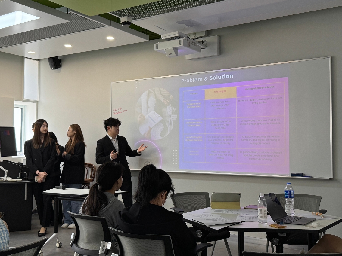 該專案始於2025年2月為期兩天一夜到台山市的實地考察。在這次沉浸式體驗中,學生們參觀了銀信文化古街及其周邊地區,親身體驗當地的文化、歷史資源和社區設施。實地考察後,學生投入多個月制定全面的旅遊概念和商業生態系統策略,以振興該地區。他們提出利用當地遺產促進可持續經濟發展的創新方法,並向澳門台山青年會與台山市東陵華僑研學基地的代表進行展示。