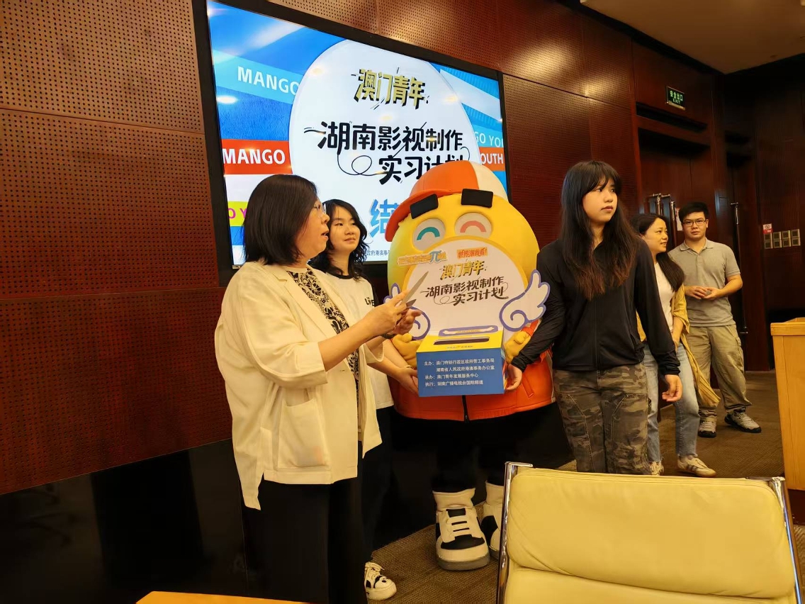 由澳門特別行政區政府勞工事務局(下稱“澳門勞工局”)與湖南省人民政府港澳事務辦公室(下稱“湖南港澳辦”)聯合主辦,澳門青年發展服務中心承辦的“澳門青年·湖南影視製作實習計劃”閉營儀式,已於8月14日在湖南長沙湖南廣播影視集團順利舉行。閉營儀式由湖南省港澳辦港澳處處長黎沖、澳門勞工局代副局長李麗琼、湖南廣電國際傳播有限公司總監蔡蓮花和澳門青年發展服務中心副總幹事劉佐春等嘉賓共同見證20名澳門青年圓滿完成為期四周的實習歷程。