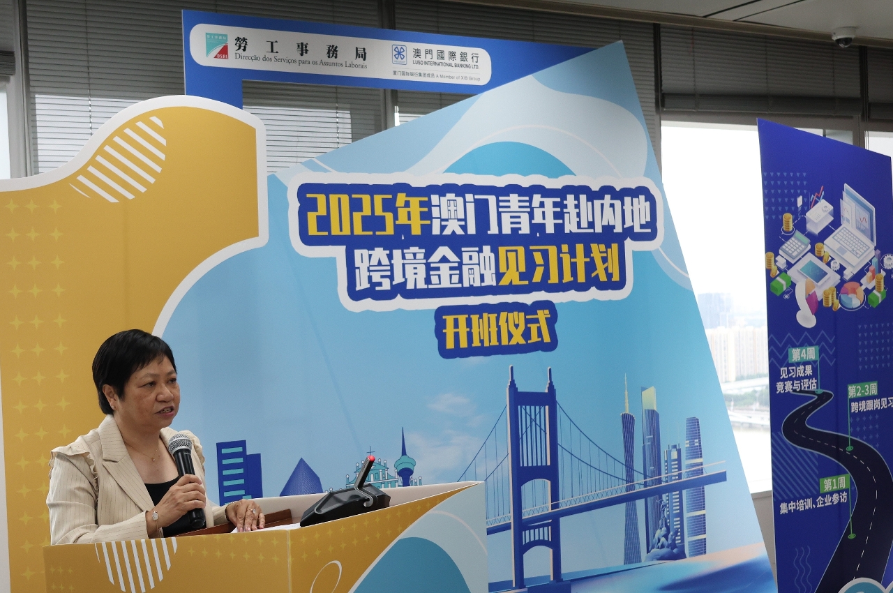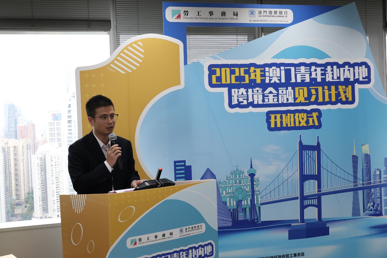 開班儀式上,澳門勞工局副局長陳子慧在致辭中表示,跨境金融作為粵澳合作的重要領域,是實現澳門經濟多元發展的關鍵環節。本次見習計劃通過「理論學習+崗位實踐」雙軌模式,為澳門青年提供深入了解內地金融生態系統的機會,同時提升其專業能力與跨文化協作精神。她希望見習生以開放的心態吸收新知識,向導師請教、與同伴協作,將理論轉化為解決實際問題的能力,並在實踐中探索創新思維,成為連接澳門與內地的橋樑。