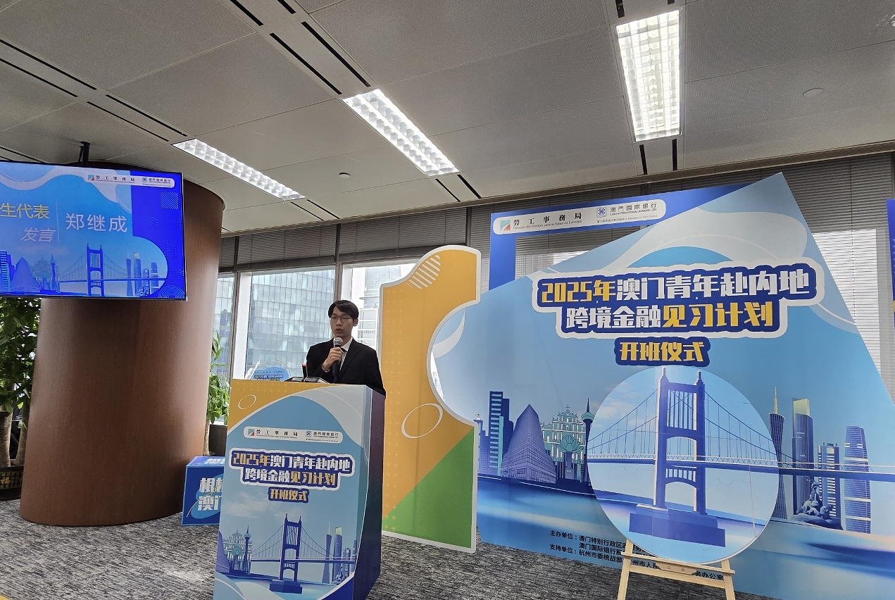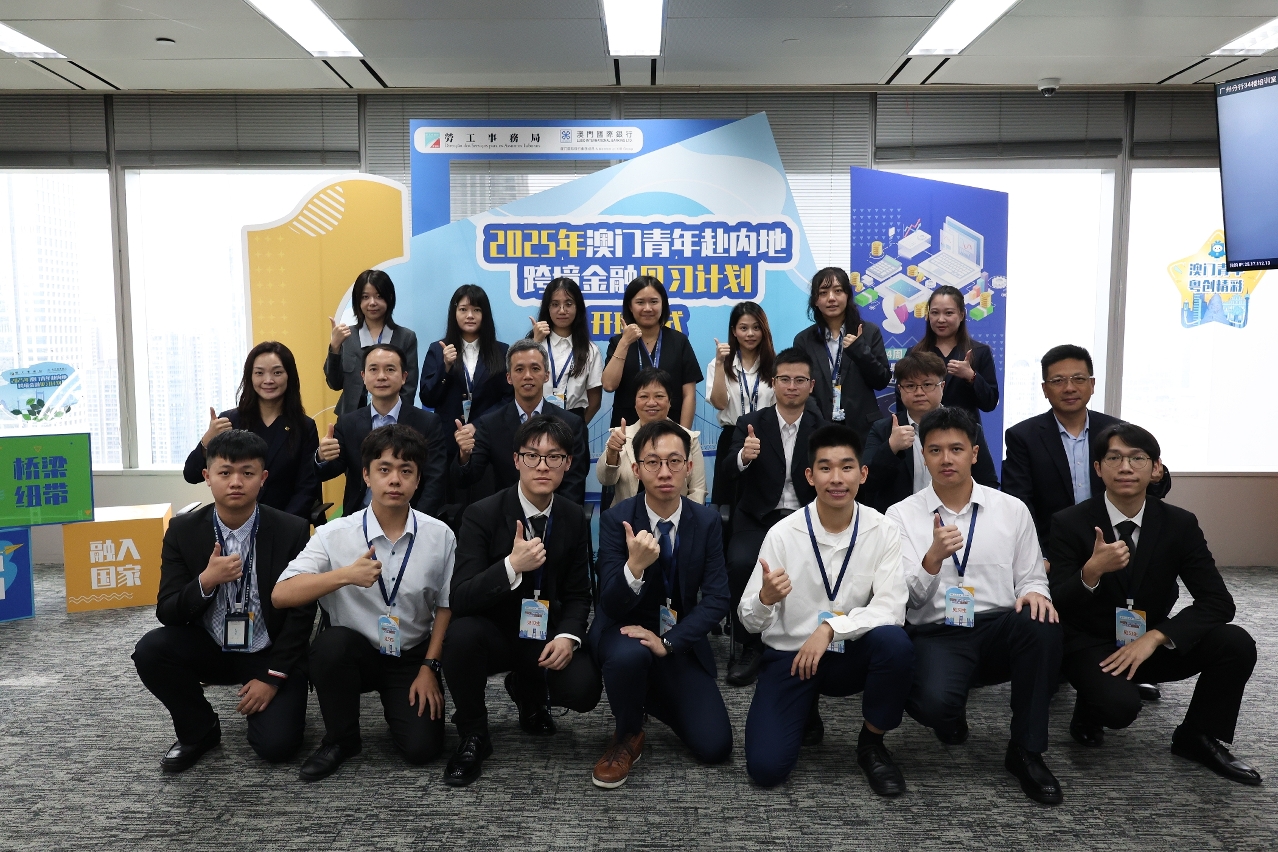 為配合澳門特區政府“1+4”經濟適度多元發展策略,推動青年融入國家發展大局,澳門特別行政區政府勞工事務局(下稱“澳門勞工局”)與澳門國際銀行股份有限公司(下稱“澳門國際銀行”)聯合主辦的“2025年澳門青年赴內地跨境金融見習計劃”(下稱“計劃”)開班儀式已於8月18日分別在澳門國際銀行廣州分行及澳門國際銀行杭州分行順利舉行。30名澳門青年隨即展開為期四周的在崗見習,深入學習跨境金融實務,拓展專業視野,累積職場經驗。