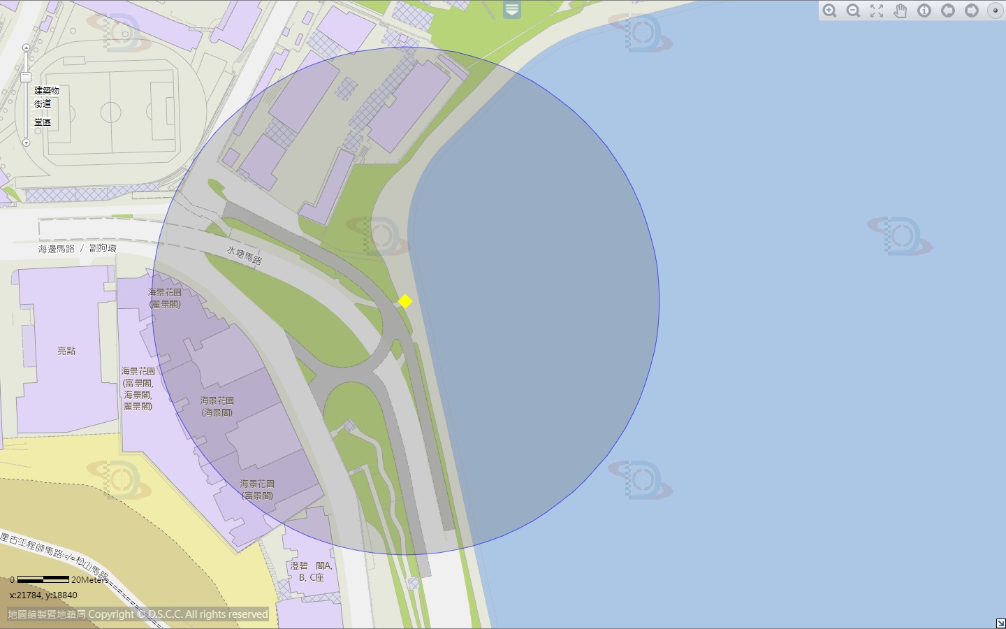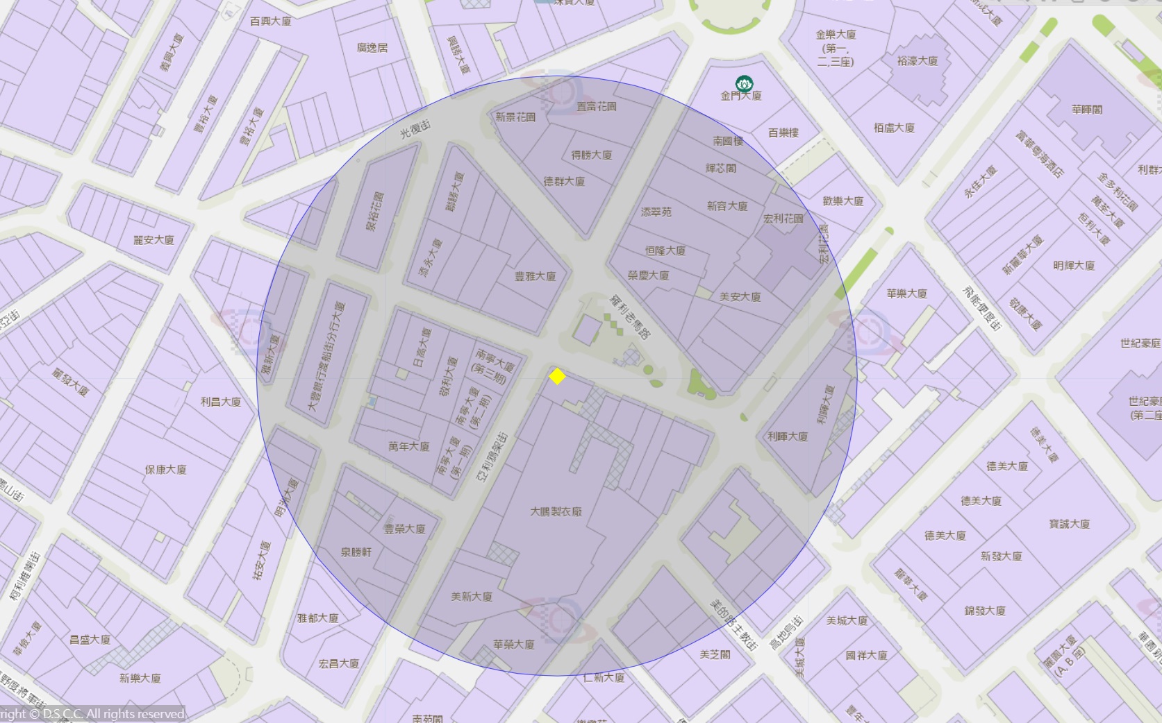 美的路主教街德昌大廈附近風險區域100米半徑範圍