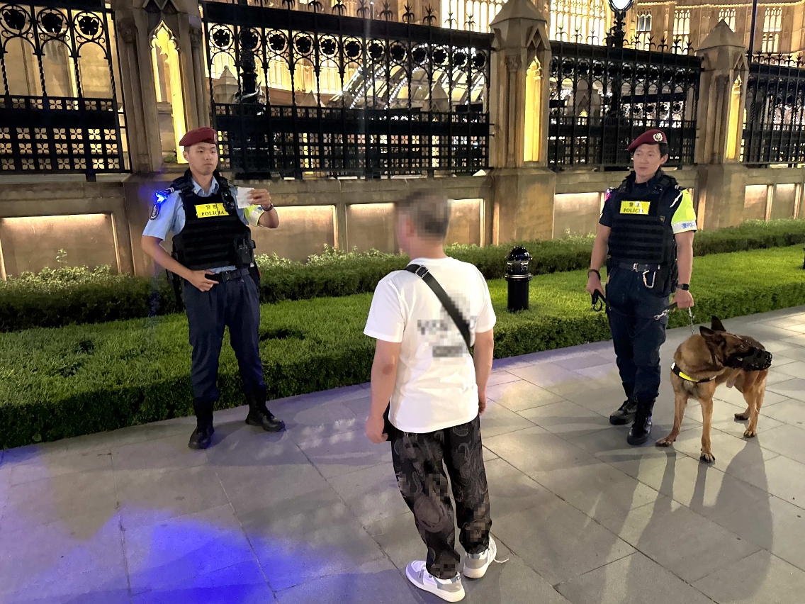在警察總局統籌下,治安警察局於昨(26)日持續開展“雷霆2025”行動,以維護本澳良好治安環境。治安警察局轄下澳門警務廳、海島警務廳、交通廳、情報廳、特警隊及轄下警犬組共派出81名人員,分別巡查澳門各區多間桌球室、賓館及按摩場所,同時在北區、中區、新口岸區、路環市區及路氹城金光大道一帶加強截查可疑人士,並進行不定點查車行動,以預防及打擊各種不法行為和犯罪活動。