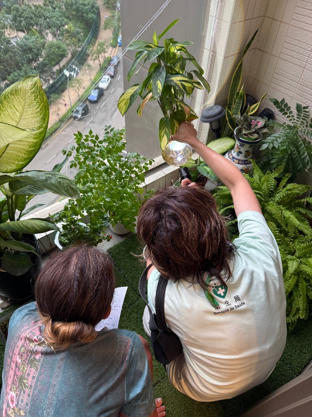 衛生局指出,基孔肯雅熱在本澳是通過帶病毒的白紋伊蚊叮咬人而傳播,不會直接人傳人,清除孳生源是最有效預防措施。在巡查期間,衛生局人員協助居民檢查花瓶、花盆底盤等家居常見積水容器時,發現部份住戶的容器已有孑孓孳生情況,已即時協助處理並向居民作防蚊健康宣教;此外,亦發現部份公共區域存在積水容器,有些甚至已孳生蚊蟲,會增加基孔肯雅熱傳播風險,故應特別留意及防範。