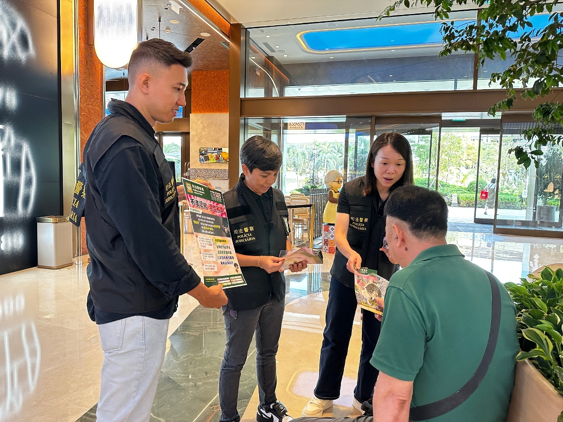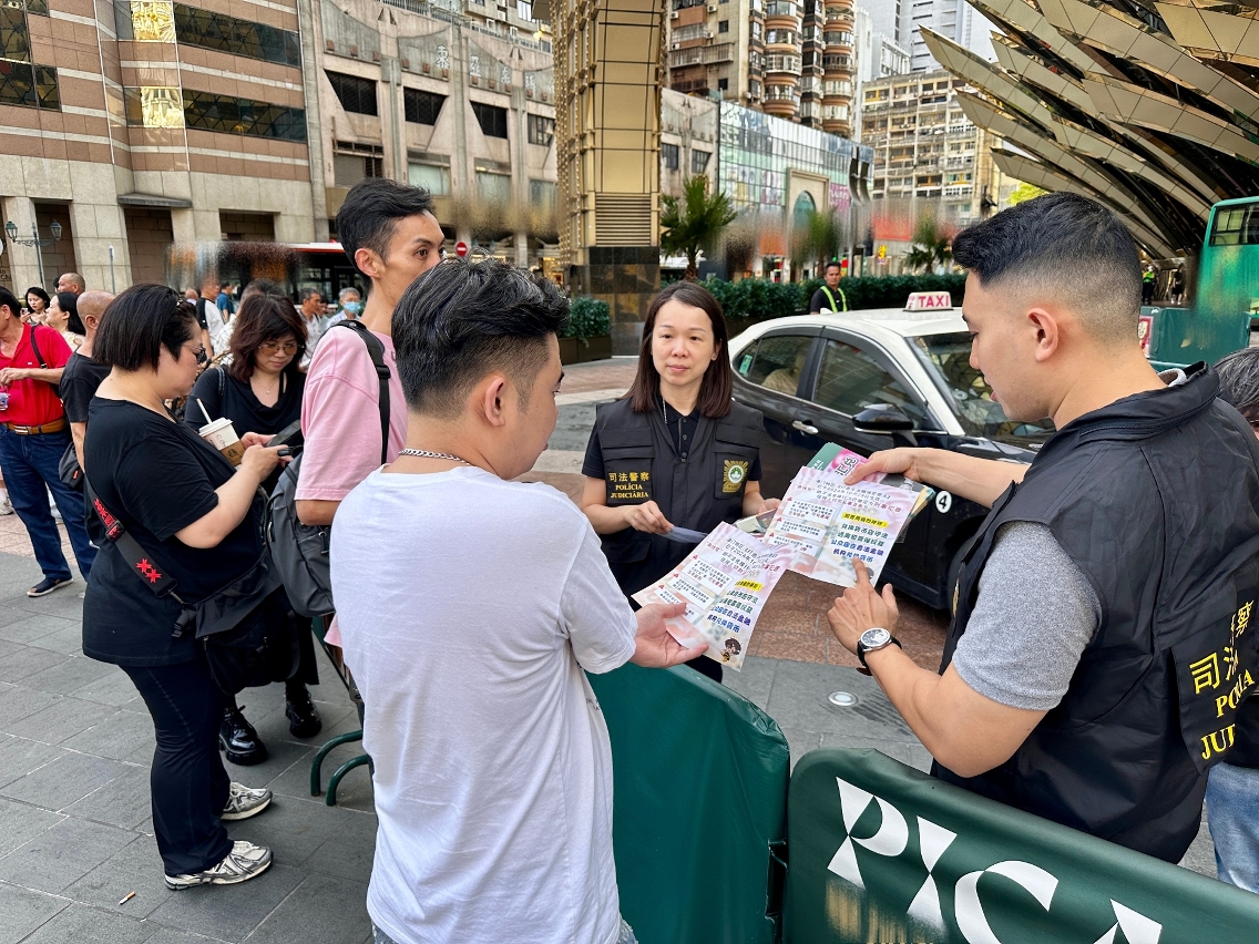 因應國慶長假期臨近,為確保本澳娛樂場治安環境穩定有序,同時讓公眾尤其是旅客深入了解第20/2024號法律《打擊不法賭博犯罪法》中關於經營為賭博的不法匯兌的相關法律規定,避免誤觸法網,司法警察局於2025年9月29日及30日前往本澳各區多間娛樂場及其周邊設施,以及出入境口岸等重點區域,全面展開相關宣傳工作,提醒公眾須嚴格遵守本澳法律法規,切勿參與或從事“換錢黨”所涉及的不法匯兌活動,以免負上刑責。