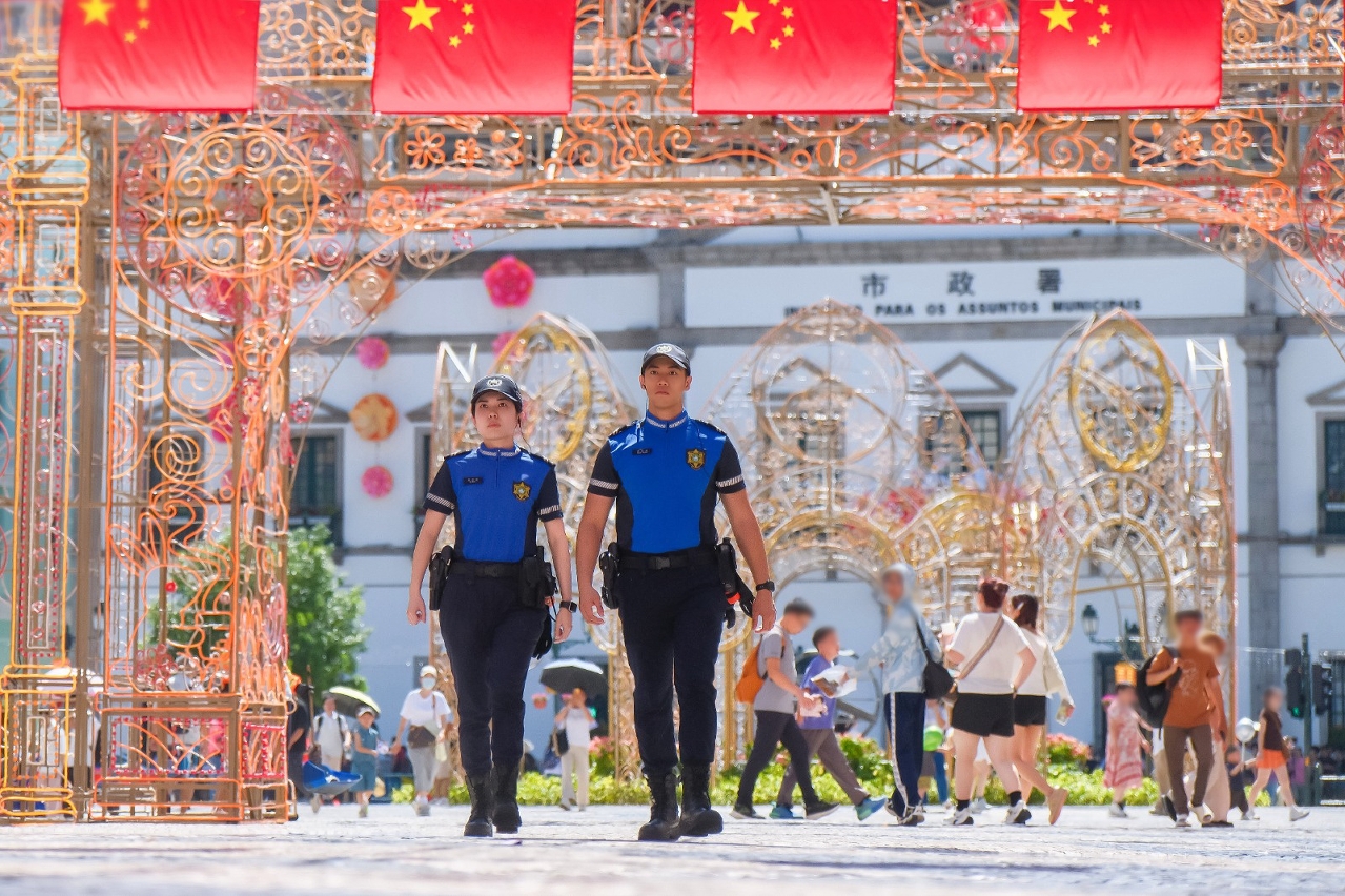 節假日期間,大多旅客前往路氹城金光大道、中區的新馬路及大三巴周邊遊覽。為保障現場暢通有序,治安警察局增派警力在各旅遊熱點周邊駐守,實時疏導人流,市民與旅客均自覺遵守現場警員指示行進,整體秩序良好。