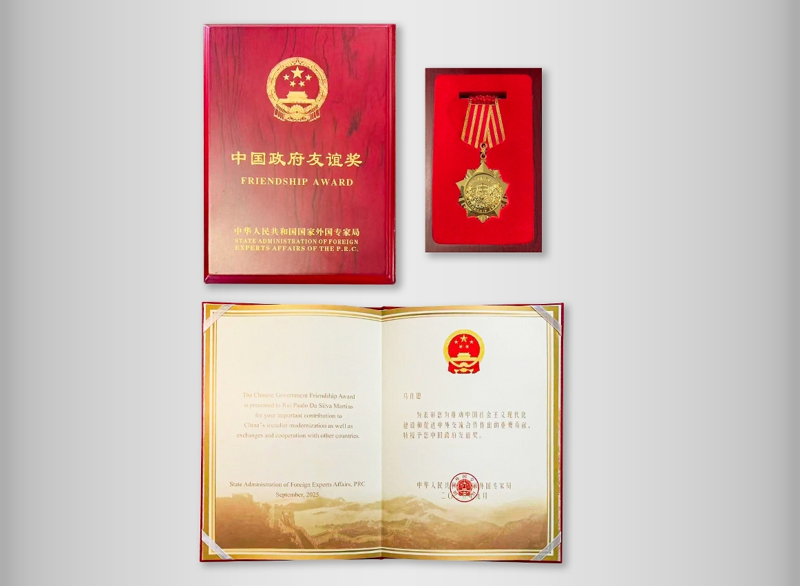 2025年度中國政府友誼獎頒獎儀式於9月30日在人民大會堂隆重舉行,澳門大學副校長、微電子研究院院長馬許願(Rui Martins)獲頒中國政府友誼獎並出席儀式領獎。該獎是中國政府授予來華工作的外國專家的國家級最高獎項,用以感謝和表彰他們在建設和促進中外交流合作所作出的重要貢獻。