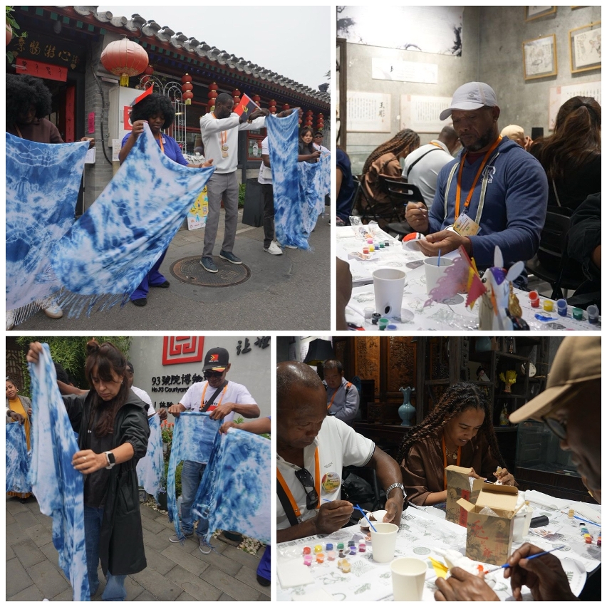 接下來,葡語文藝團體來到北京文化氣息最濃厚的93號院博物館,這裡是非遺和民間藝術傳播與體驗的基地。他們親手繪製兔兒爺、京劇臉譜,並體驗紮染手工藝,切身感受這些傳統技藝的獨特魅力和深厚意義。