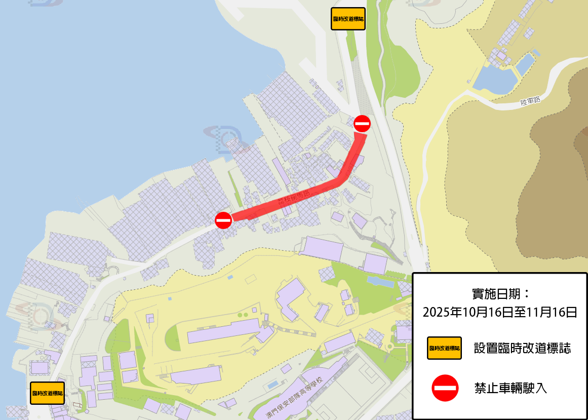 施工期間荔枝碗馬路將實施封閉交通(見附圖),僅准許特許車輛進出,敬請駕駛者留意及規劃合適的出行路線。公共建設局將與路環居民保持密切溝通,盡力減少工程影響,亦會嚴格監督施工進度,爭取工程按時完成。對於工程期間造成的不便,敬請市民諒解。