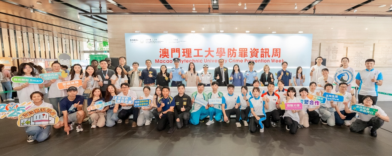 澳門理工大學學生事務處於新學年開學迎新期間主辦“2025防罪資訊周”,本年以“擁抱正向生活,共築安全校園”為主題,與多個政府部門和社會服務機構合作,開展一系列精彩豐富的活動,包括主題宣傳攤位、防騙大使委任、反詐宣傳車進校園、反詐講堂、參觀司法警察局等,透過校警社合作,全方位提升青年學生知法守法意識和安全防範能力,共同築牢校園安全網絡。