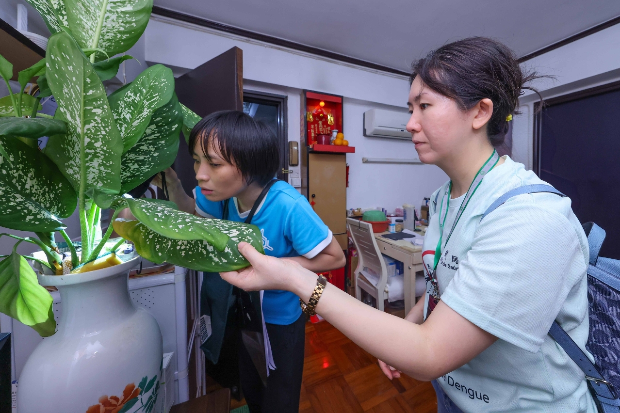 10月13日至15日期間,宣導隊已於青洲、下環街、龍嵩正街及紅窗門街等高風險區域展開工作,累計巡查逾9,000戶,面對面向超過3,700戶居民進行防蚊宣教,進入約950個單位進行手把手現場指導。共發現約1,100個積水容器,其中44個已有孑孓(蚊幼蟲)。常見積水點包括水養植物容器、盆栽底盤、未加蓋儲水容器、祭祀用杯皿、洗手間儲水設備,以及陽台地面與各類堆放容器。