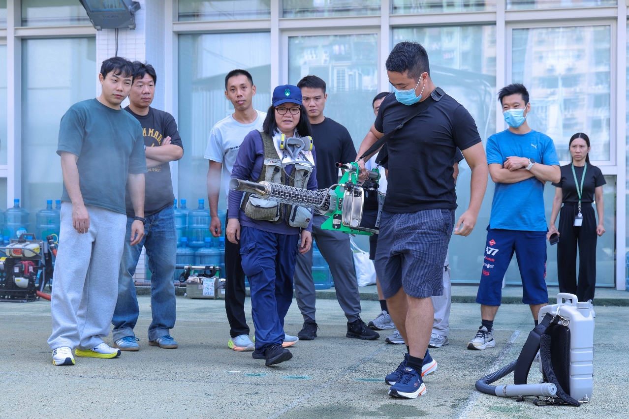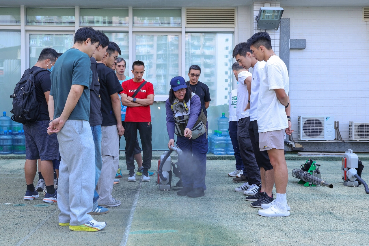 培訓課程分為室內講解與室外實務操作兩部分,內容包括:1、講解操作人員應佩戴的安全防護裝備,確保在使用藥物及機器過程中保障個人安全;2、介紹滅蚊機器及藥物的種類與特性,以了解不同設備的功能與適用場景,以及噴灑的最佳時機; 3、系統說明滅蚊操作流程及注意事項,以掌握標準作業方法;4、由專業人員現場示範超低容量噴霧機及熱霧機的操作,又安排分組實操,以便熟悉設備操作及噴灑技巧,提升整體的實務操作能力。