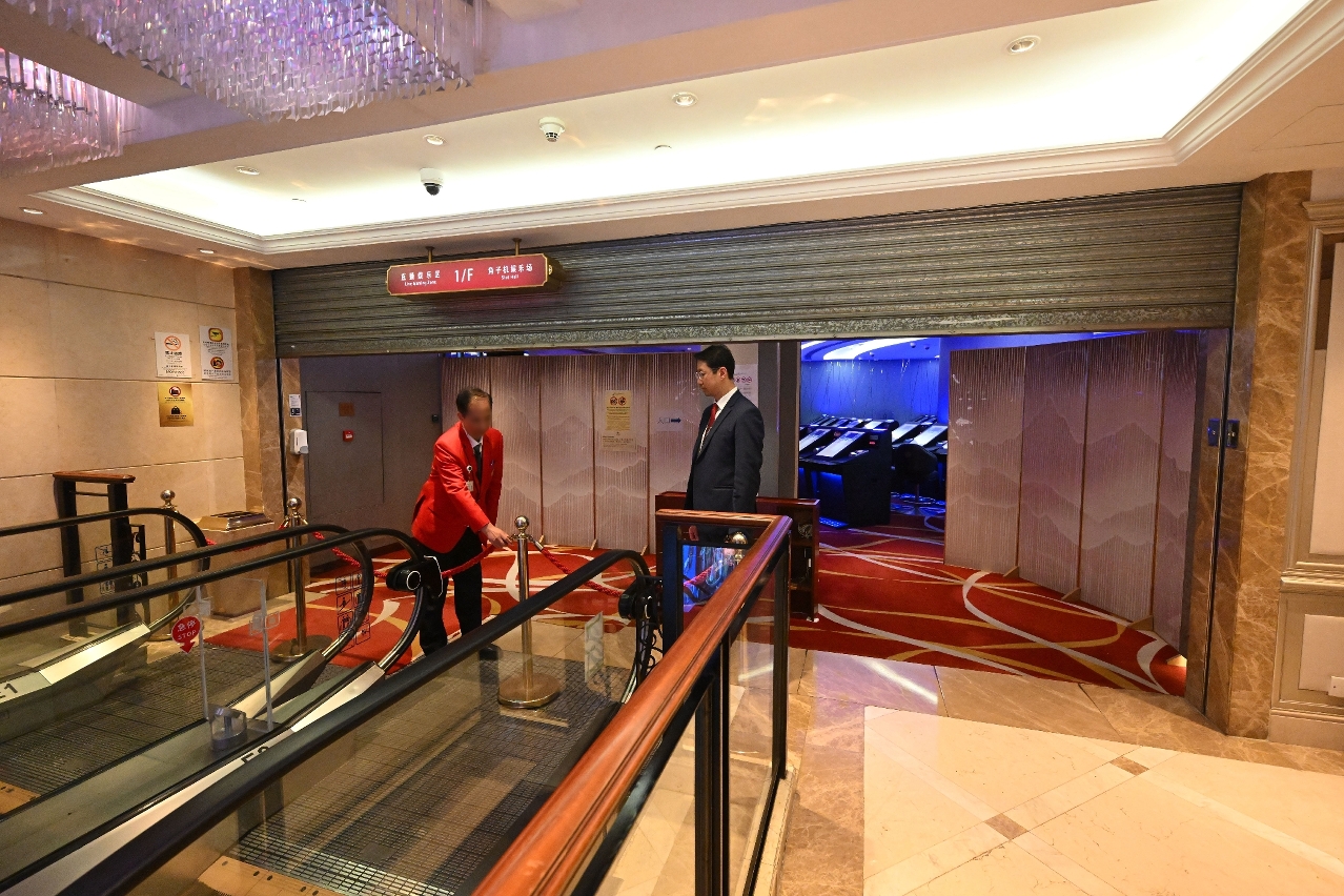 英皇宮殿娛樂場於10月30日晚上11時59分正式結束營運後,博監局隨即進行博彩桌及博彩機的停運程序,積極協調各部門跟進場地清退等相關事宜,過程井然有序。