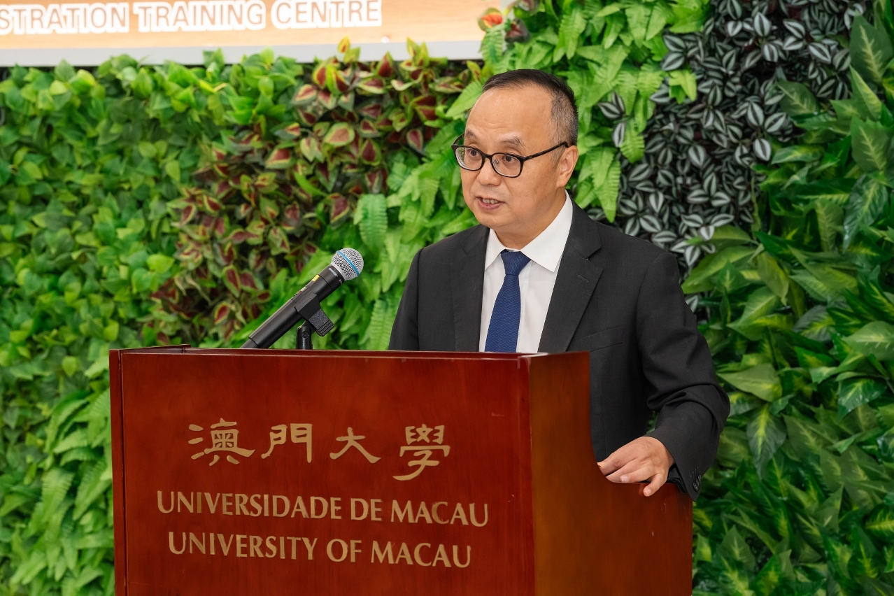 澳門大學宋永華校長致辭時表示,澳大公共行政培訓中心協助特區政府組織的新一期“擔任處長官職資格課程”,在強化學員交流的基礎上,透過共同研討、分組調研、集中報告等途徑,引導學員提煉出兼具創新性和可行性的行動方案。宋永華期待學員珍惜難得的學習機會,主動學習,積極思考,結合課堂所學與本職工作,共同為特區政府的公共治理、為澳門特區更好融入國家發展大局貢獻智慧和力量。