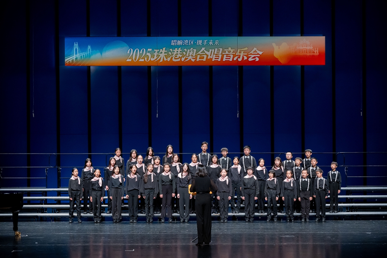 文化局轄下澳門演藝學院澳門少年合唱團於11月2日前往珠海參加“唱響灣區・攜手未來”2025珠港澳合唱音樂會,與來自珠海、香港兩地的優秀合唱團約三百位青少年同台演出,共同展現大灣區青少年的藝術才華和精神風貌。