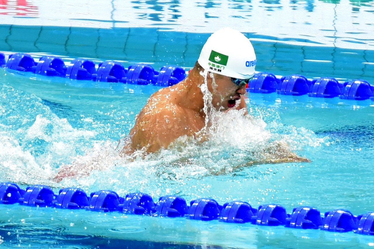 游泳項目繼首日有吳致軒(NG CHI HIN)闖入50米蝶泳半決賽後,今早再有林志聰(LAM CHI CHONG)在男子50米蛙泳游出個人最佳時間28秒38,以預賽總成績第15位躋身半決賽,晚上進行的半決賽,林志聰(LAM CHI CHONG)游出27秒98,總成績排第12位,未能再進一步入決賽;同樣今早出戰50米蛙泳預賽的隊友周文顥(CHAO MAN HOU)游出28秒58,與晉級時間僅相差0.16秒,總成績排第19位完成賽事。