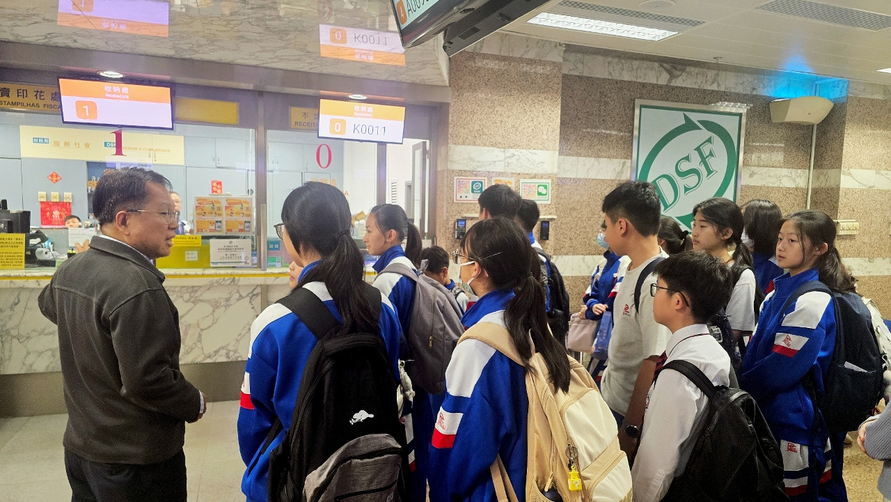 為促進青年認識稅務及相關行政運作,財政局於今年3月接待澳門培正中學師生一行,透過參觀與現場講解,讓同學們深入了解稅務部門的職能、葡語在行政實務中的應用,以及澳門與葡語國家的稅務合作情況。為加深學習印象,活動更特別加設葡語互動環節,局方人員以葡語提問稅務相關知識,同學們以所學葡語應答,幫助學生近距離體驗公共行政實務運作,進一步拓展視野。