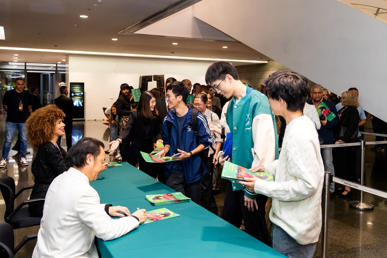 巴西著名歌手Vanessa da Mata獨具感染力的歌聲與舞台魅力,在澳門中樂團音樂總監兼首席指揮張列的引領下,與澳門中樂團攜手演繹多首重新編配的Vanessa da Mata經典作品。整場音樂會為觀眾呈獻20首曲目,其中〈Boa Sorte/Good Luck祝你好運〉與〈Ai, Ai, Ai, 哎, 哎, 哎〉等歌曲更將現場氣氛推向高潮。音樂會巧妙融合細膩悠揚的中樂與巴西流行音樂(MPB)、Samba、Frevo、Reggae等多元曲風,呈現中巴音樂交融的創新演繹,展現巴西音樂與東方樂韻激情碰撞的藝術火花,進一步體現澳門作為“中國與葡語國家文化交流中心”的獨特魅力,讓樂迷陶醉不已。音樂會結束後設簽名會,觀眾踴躍與主唱Vanessa da Mata及指揮張列交流合影,為音樂會畫上圓滿句號。