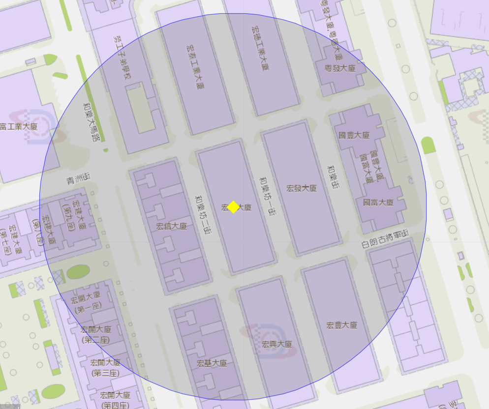 • 和樂坊二街28至56號宏昌大廈附近風險區域100米半徑範圍