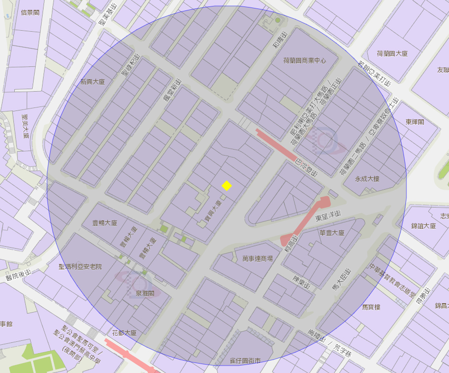 荷蘭園大馬路5至9號成昌大廈附近風險區域100米半徑範圍