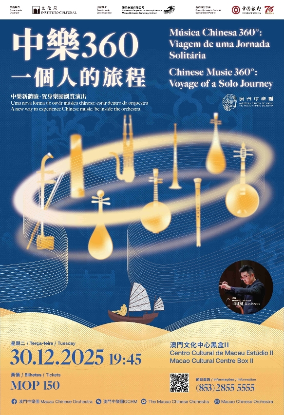 由文化局主辦,澳門樂團有限公司承辦,澳門中銀支持的澳門中樂團樂季《中樂360》音樂會,將於12月30日(周二)晚上7時45分在澳門文化中心黑盒劇場II上演。《中樂360》將突破慣常欣賞音樂會的安排,讓觀眾的多重感官沉浸於音樂會之中,享受一趟獨遊音樂旅程。