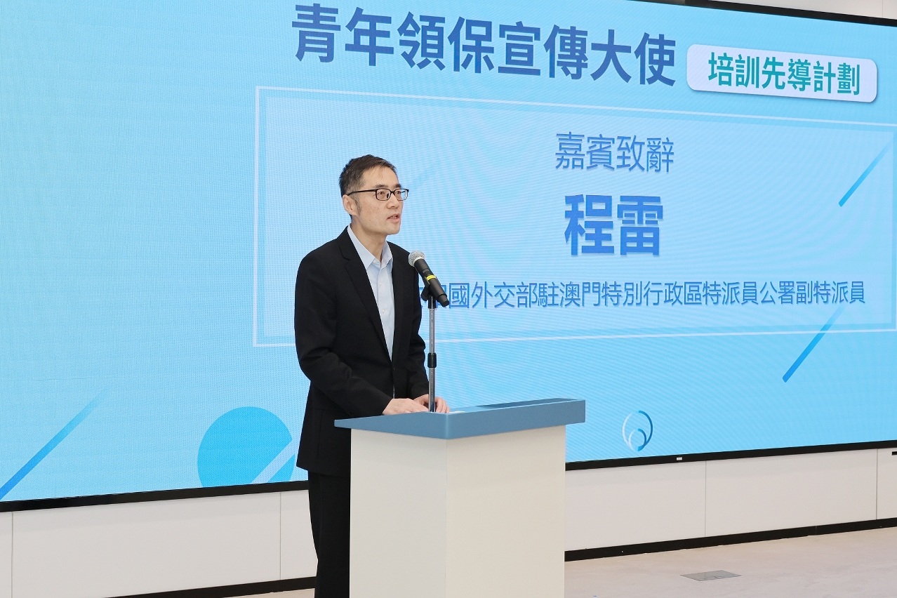 外交公署程雷副特派員致辭時表示,中央政府始終高度關心領事保護工作,中國公民、企業無論在海外遇到何種困難、危險,祖國總是他們最強大的後盾。外交部駐澳公署高度重視澳門同胞在海外旅行期間的各項安全,與特區政府建立應急處突機制,切實做到第一時間回應同胞求助,用心用情做好紓困解難。希望廣大澳門青年學生以此次活動爲契機,增進自身對領保知識的了解和掌握,積極開展交流,承擔起“青年領保宣傳大使"職責,讓領保知識覆蓋更多澳門居民,為構建平安澳門、幸福澳門添磚加瓦。