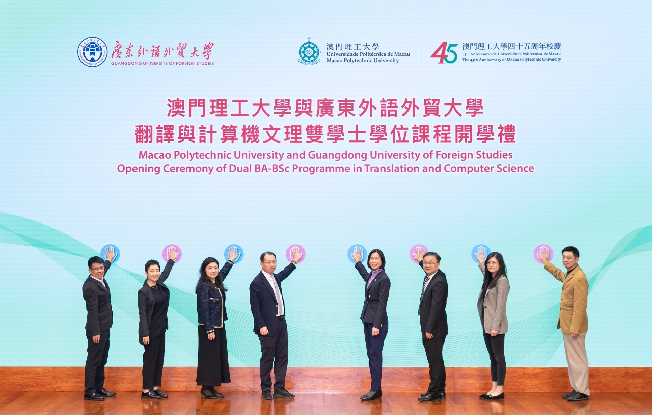 廣外—澳理大合作辦學項目於2023年6月由澳門理工大學校長嚴肇基、廣東外語外貿大學黨委書記石佑啟啓動及共同揭牌,項目採用“3+1”文理雙學位培養模式,學生在澳理大學習的一年時間中,將重點聚焦技術應用、創新實踐與跨文化體驗。項目由兩校選拔的高水平國際化教師組成教學團隊,課程設計強調前沿性和跨學科性,與國際標準接軌,並納入國家高等教育和澳門高等教育質量保證體系,確保教學質量。出席“翻譯及計算機文理雙學士學位課程開學禮”的嘉賓尚包括:廣東外語外貿大學港澳台事務工作部副部長陸露(主持工作)、信息科學與技術學院副院長王連喜、高級翻譯學院副院長王巍巍;澳門理工大學應用科學學院院長林燦堂、學術事務部部長張詠藍、電腦學理學士學位課程主任鄧樹傑、招生註冊處處長蘇碧玲,以及公共關係辦公室主任蕭嘉琳等。