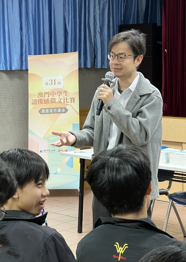 由澳門基金會與澳門日報合辦的第三十一屆“澳門中學生讀後感徵文比賽”之延伸活動“閱讀寫作講座”已於2026年1月圓滿舉辦,本屆共組織了15位本澳作家走訪24間中學,與學生們分享閱讀心得及寫作技巧,藉此引發學生對文字的興趣,參與學生逾1,900名。講座自第二十屆起舉辦至今反應熱烈,深受師生歡迎。為持續推廣校園的閱讀寫作風氣,主辦單位將於每一學年初推出有關講座,歡迎各校踴躍參與。