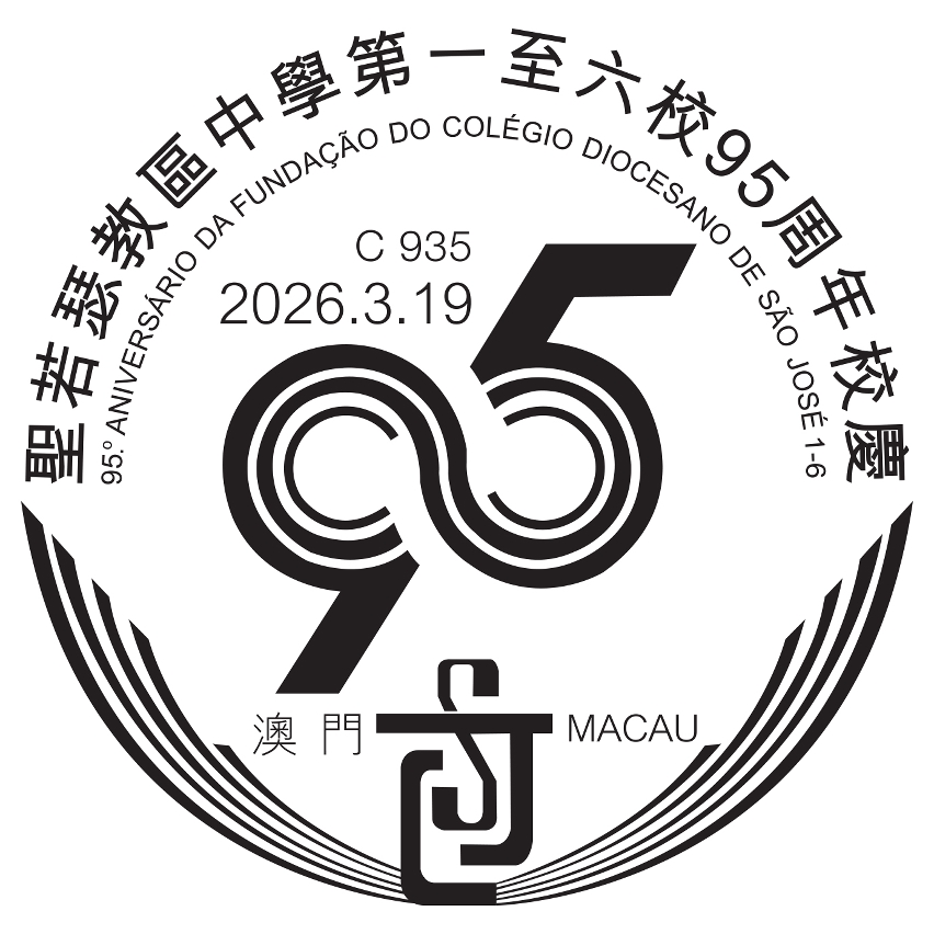 為慶祝聖若瑟教區中學第一至六校95周年校慶,郵電局特於二零二六年三月十九日下午一時至四時三十分,在聖若瑟教區中學第六校(青洲河邊馬路14-17號)設置臨時櫃台,為市民提供加蓋 “聖若瑟教區中學第一至六校95 周年校慶” 紀念郵戳服務。